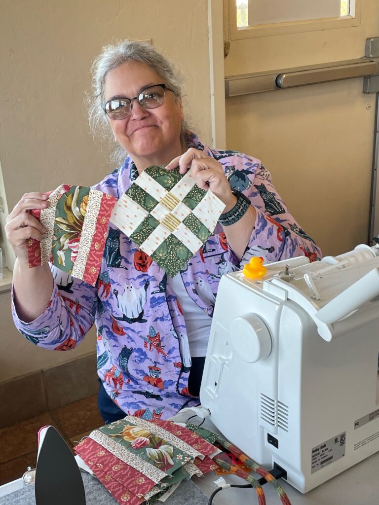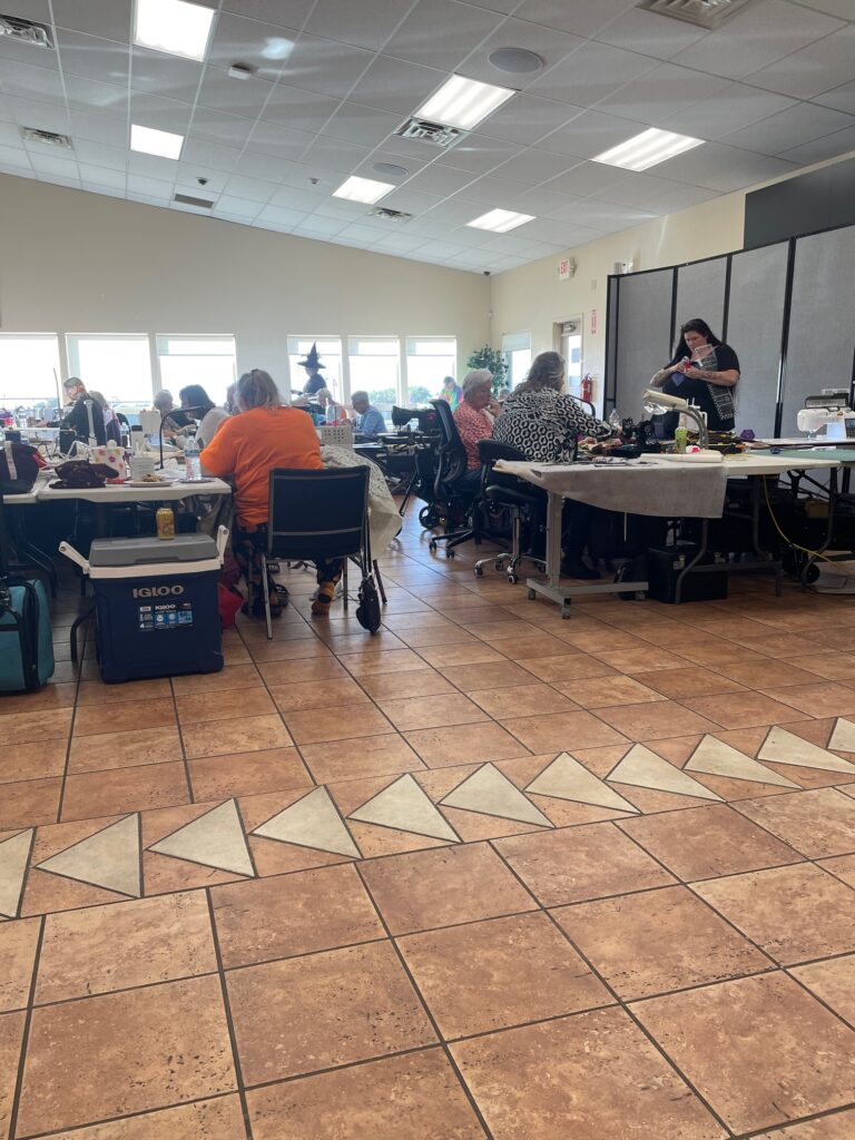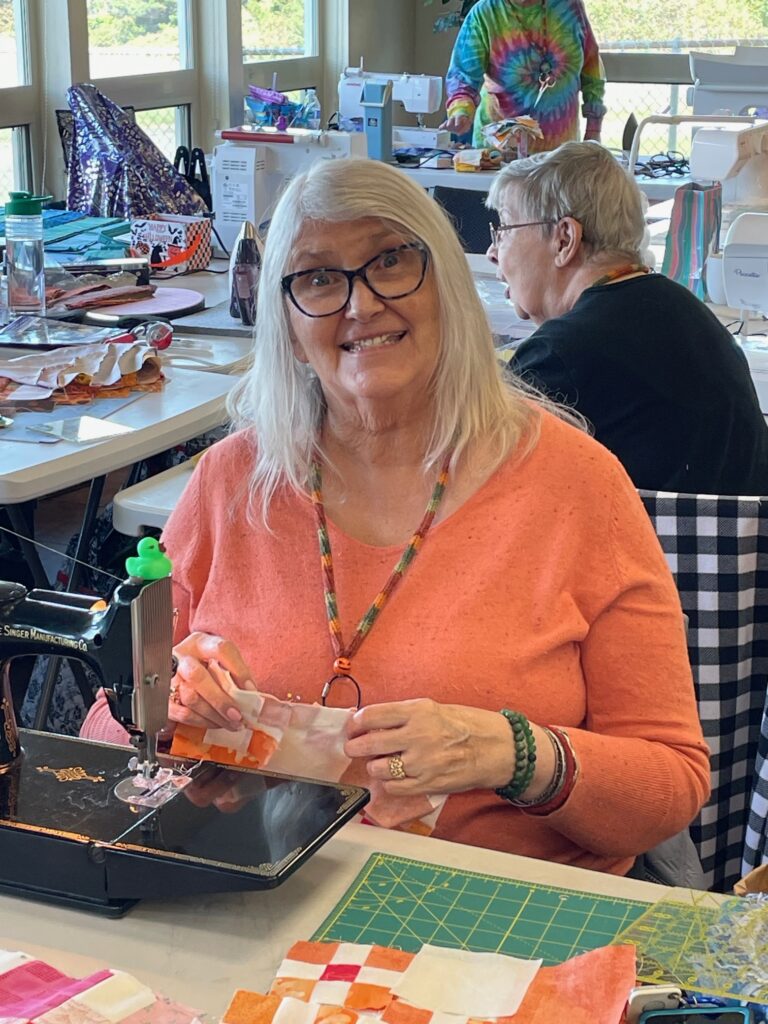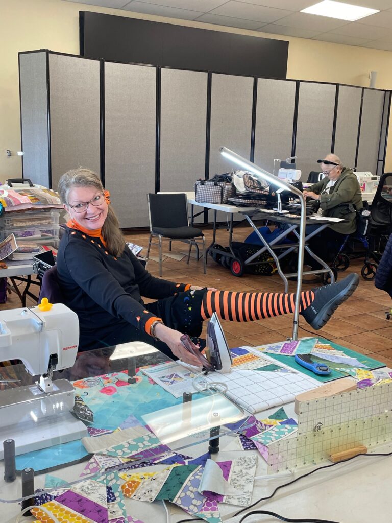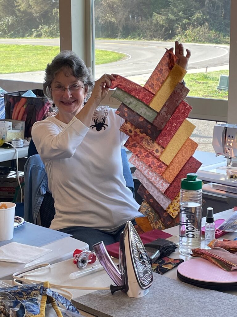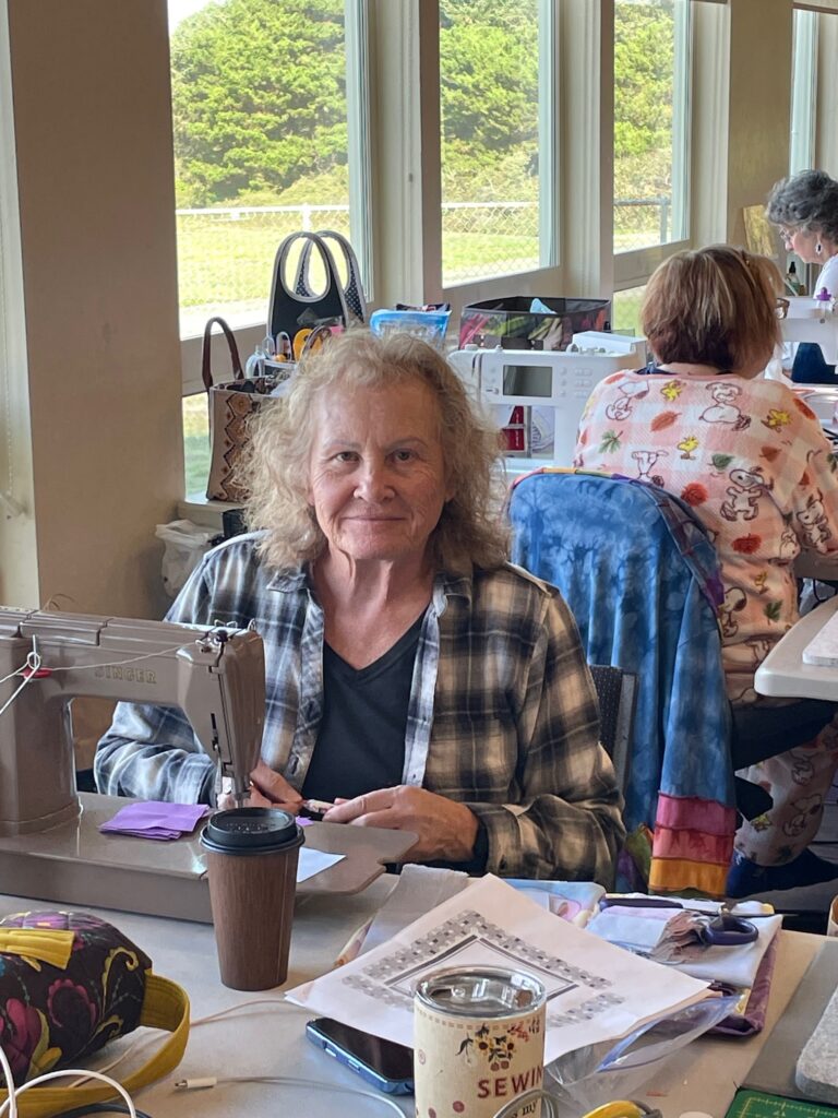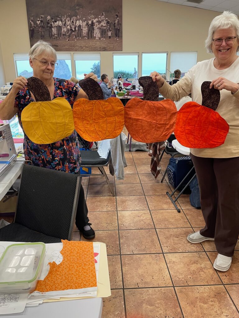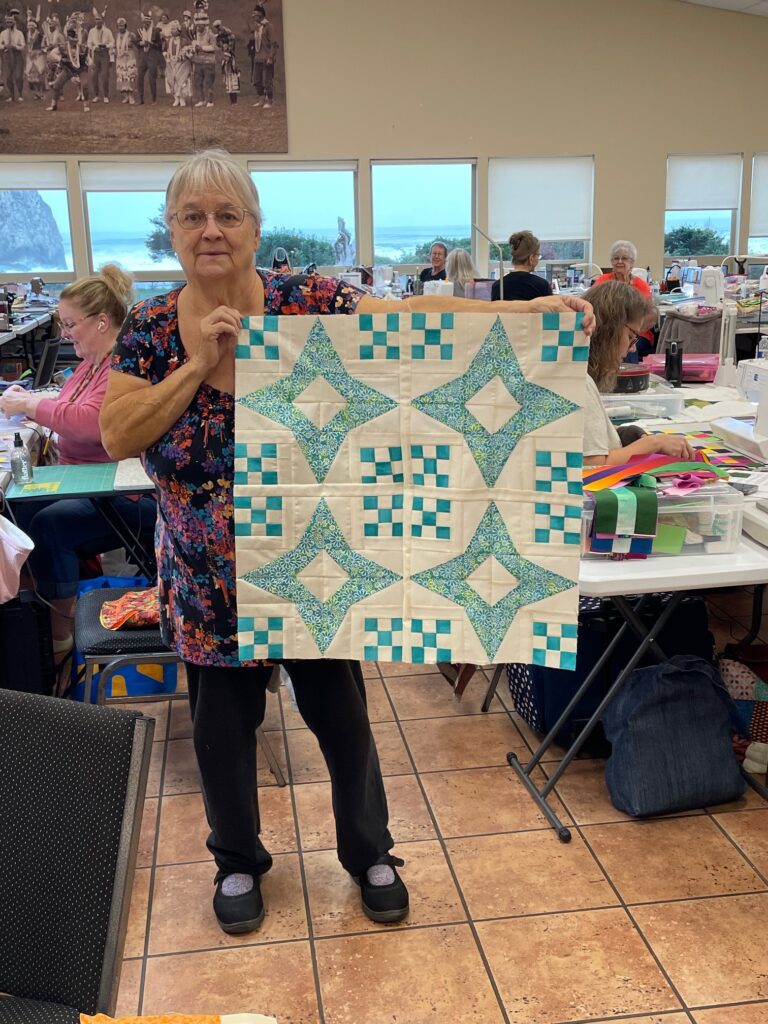 This was another amazing retreat – lots of quilting, camaraderie, yummy food, and beautiful ocean views at the wonderful Howonquet Hall Community Center in Smith River (across the road from the Lucky 7 Casino and Lodge) on the beautiful California coast. Friday was Halloween and many of the attendees and hotel/restaurant staff dressed for the occasion – so much fun!