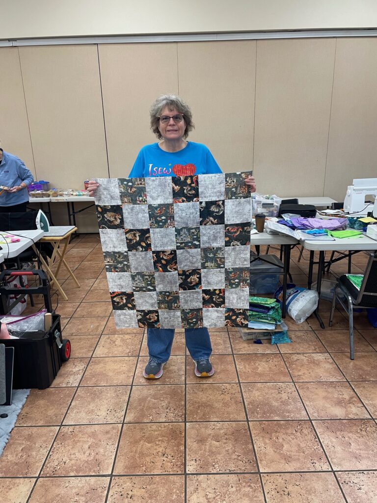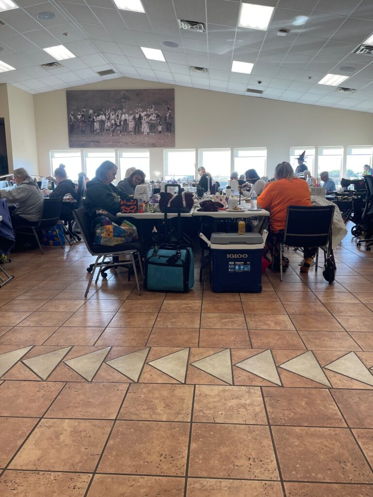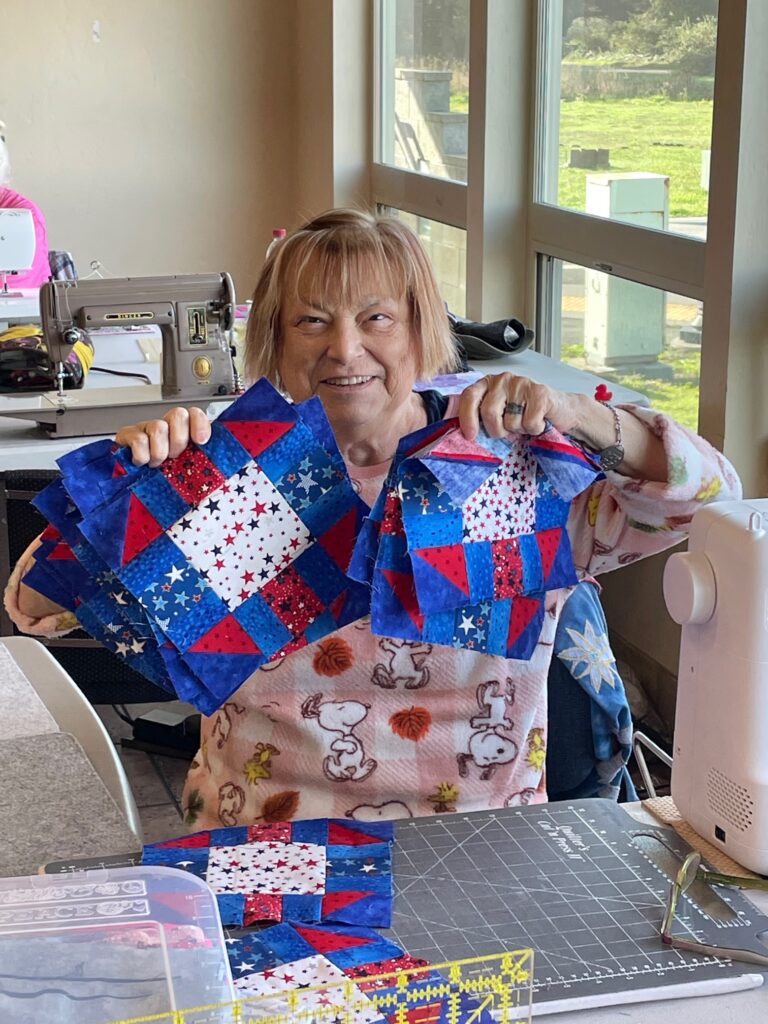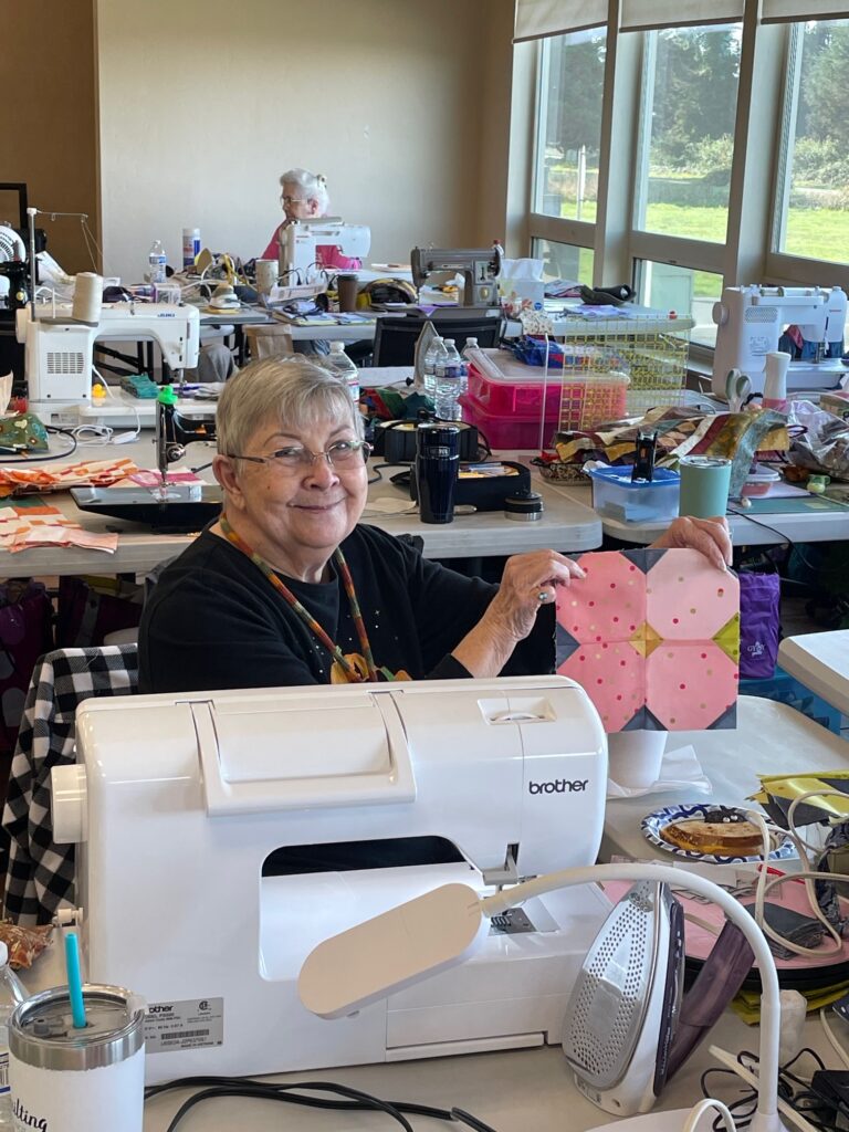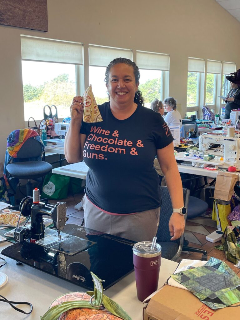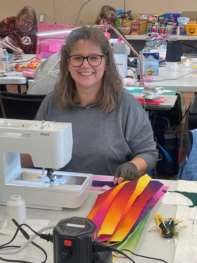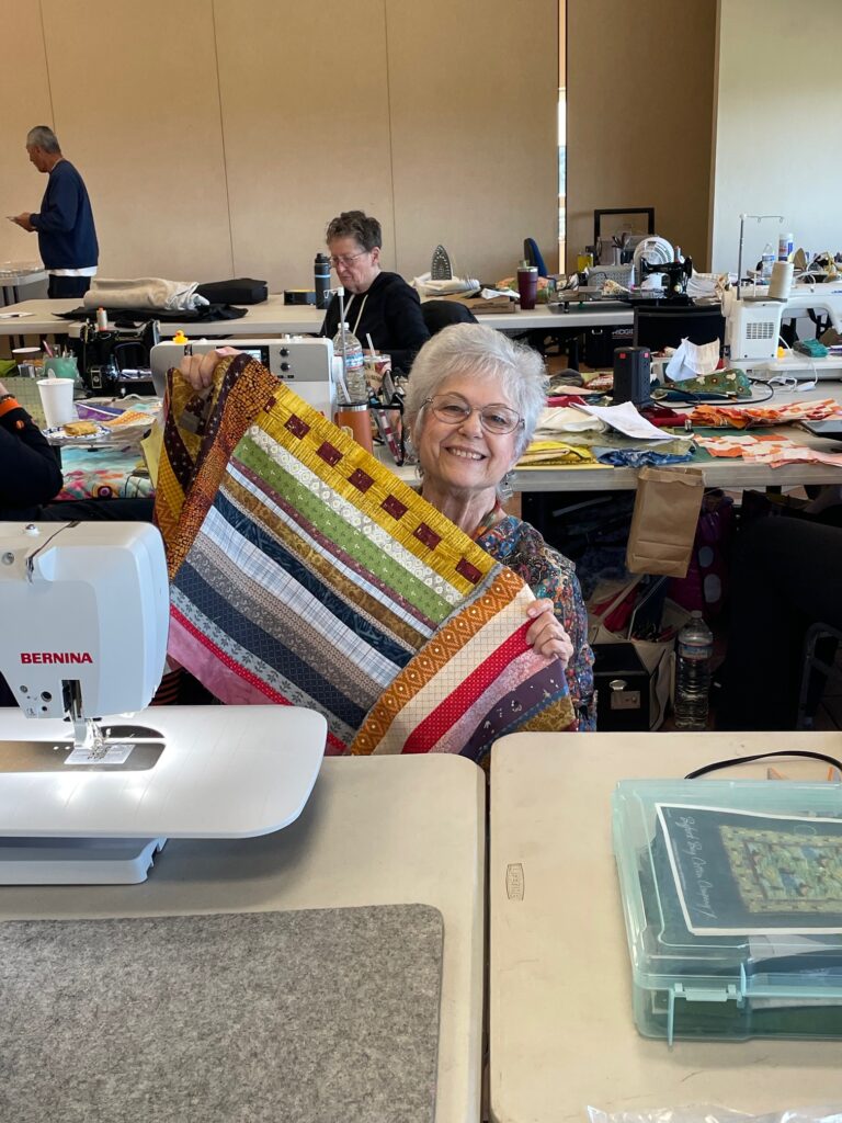 This was another amazing retreat – lots of quilting, camaraderie, yummy food, and beautiful ocean views at the wonderful Howonquet Hall Community Center in Smith River (across the road from the Lucky 7 Casino and Lodge) on the beautiful California coast. Friday was Halloween and many of the attendees and hotel/restaurant staff dressed for the occasion – so much fun!