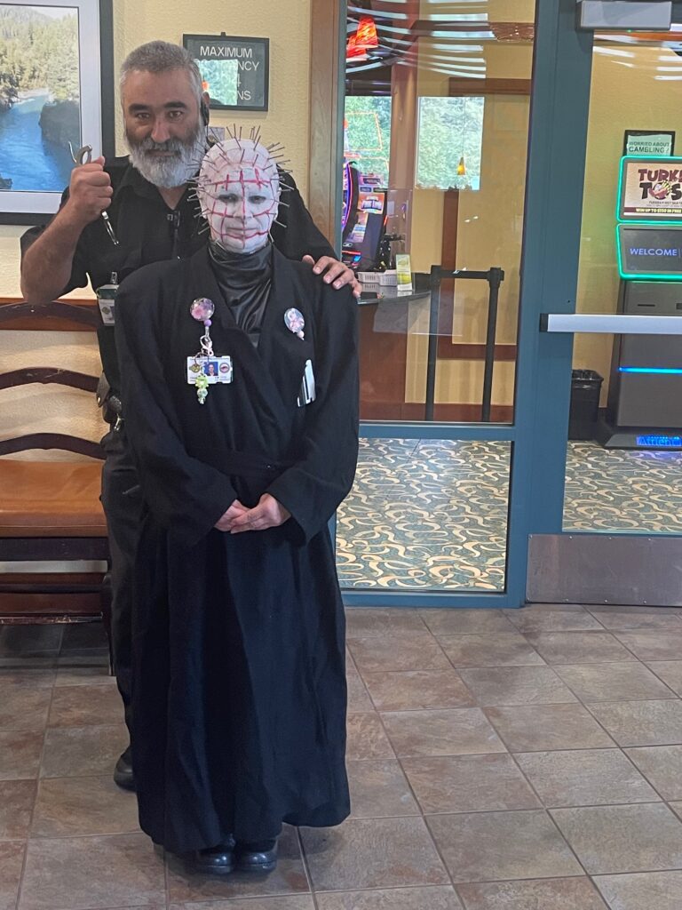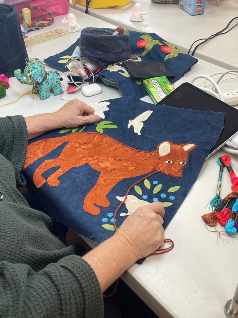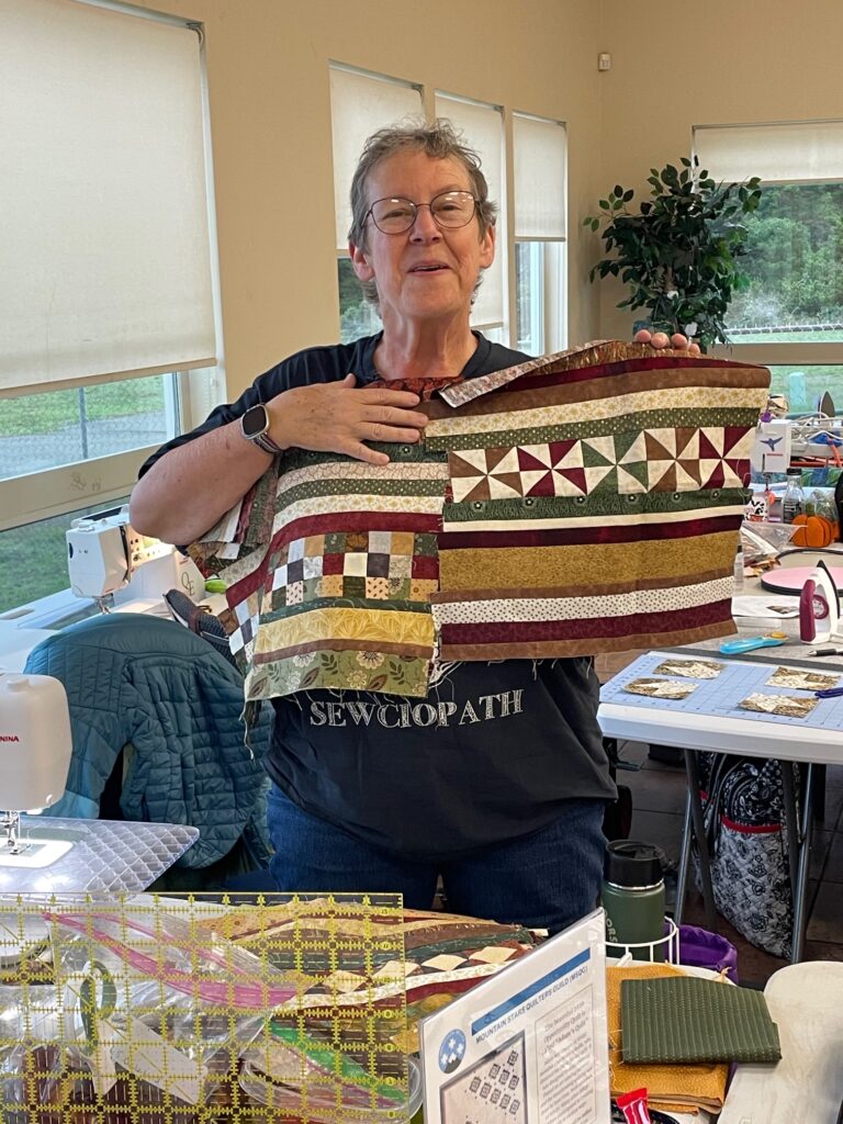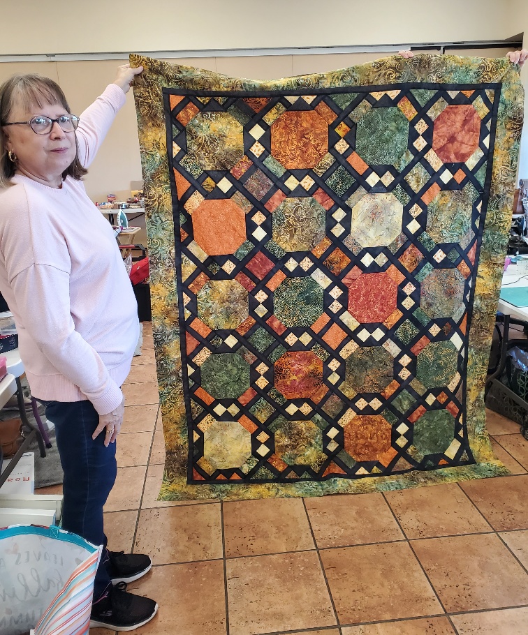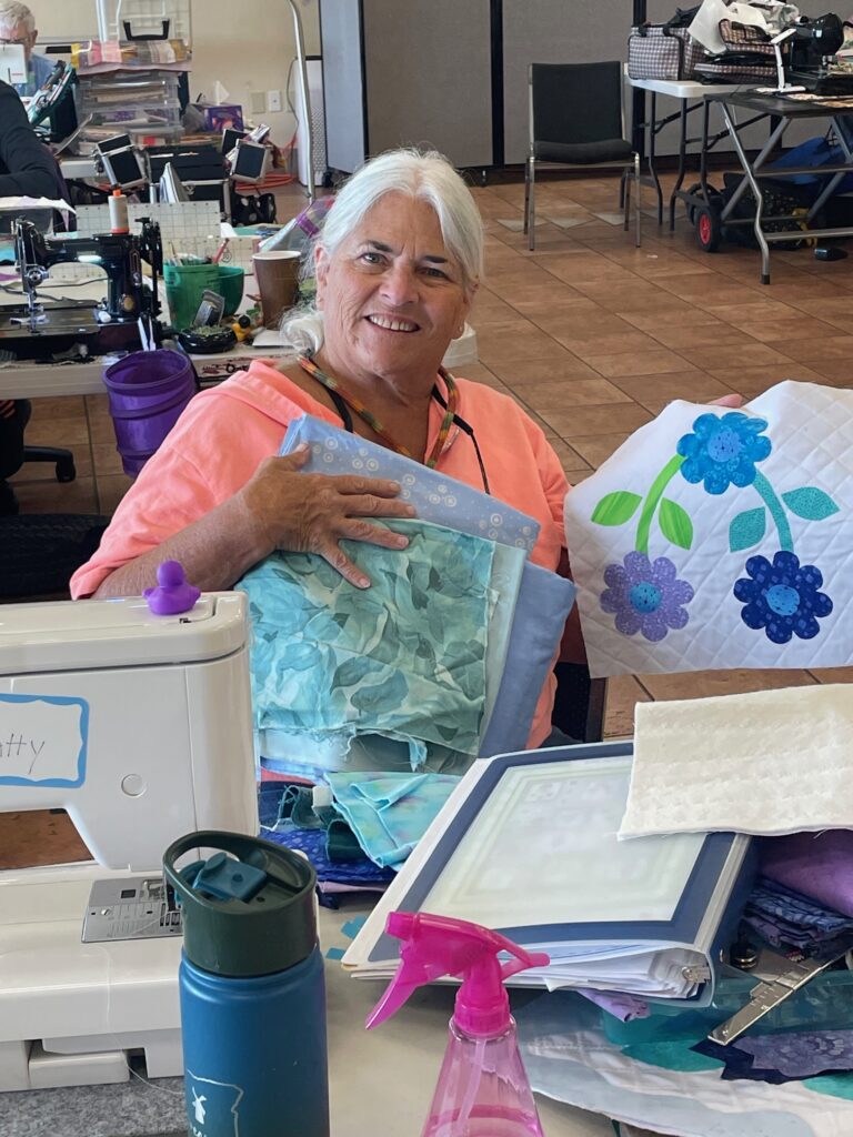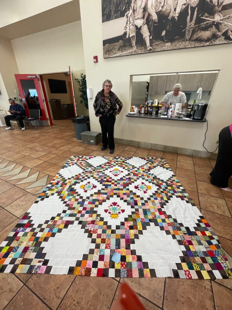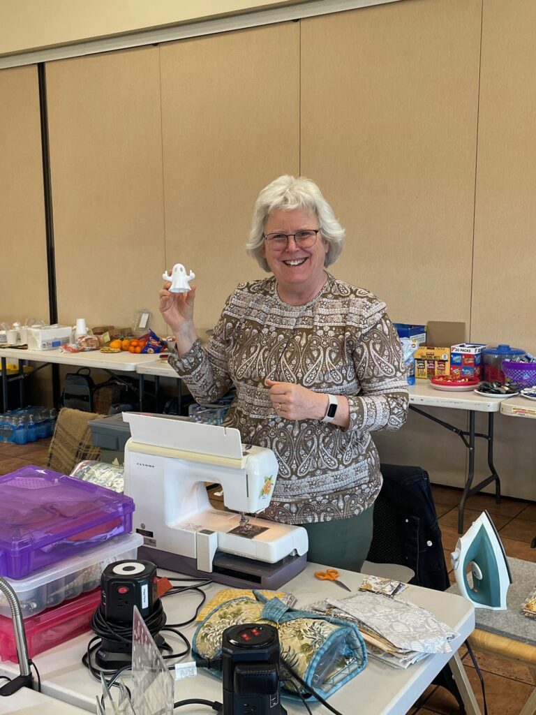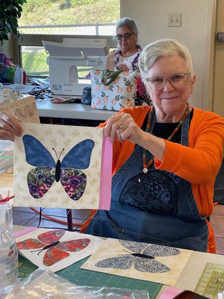 This was another amazing retreat – lots of quilting, camaraderie, yummy food, and beautiful ocean views at the wonderful Howonquet Hall Community Center in Smith River (across the road from the Lucky 7 Casino and Lodge) on the beautiful California coast. Friday was Halloween and many of the attendees and hotel/restaurant staff dressed for the occasion – so much fun!